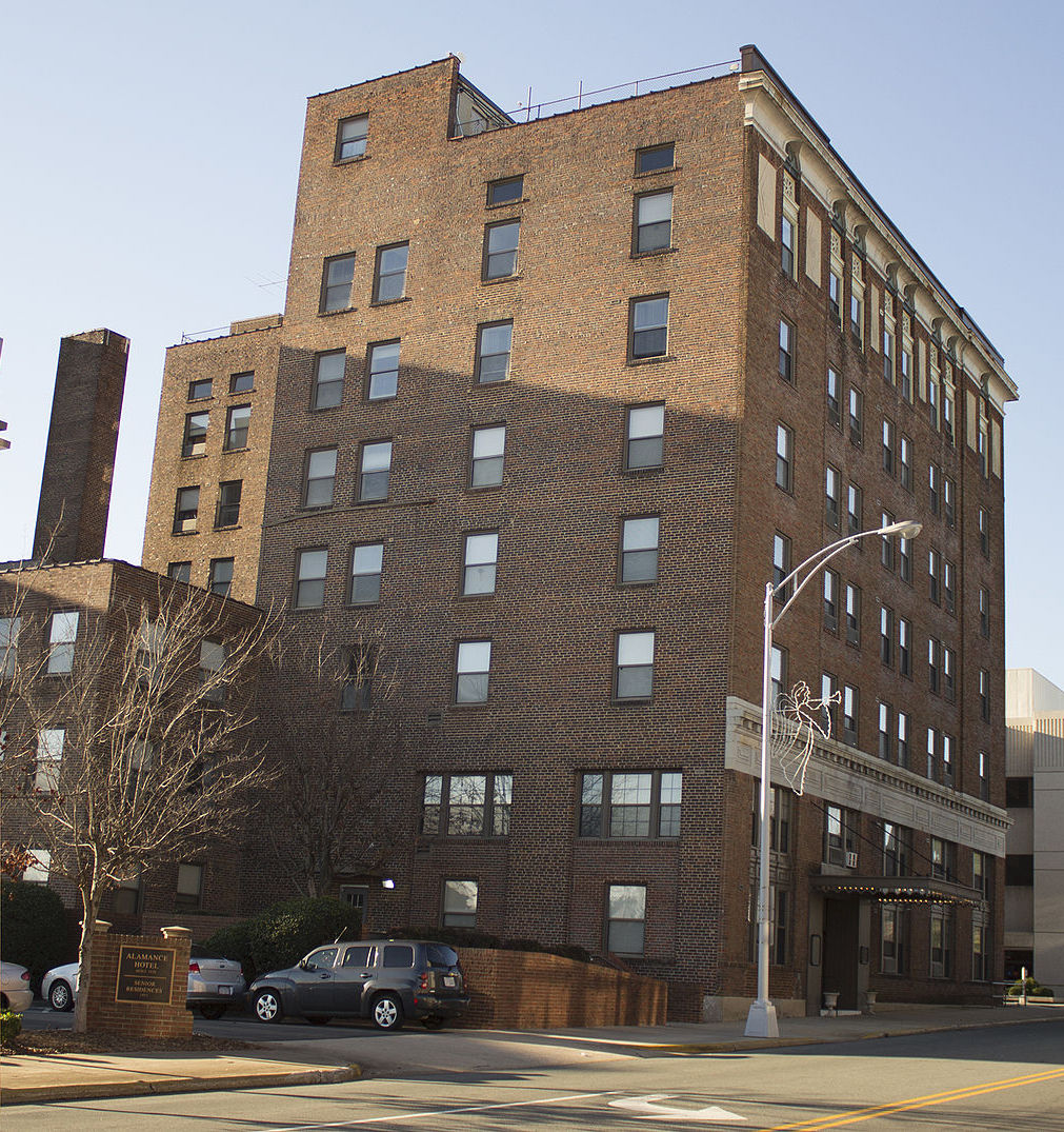 Now a residence for senior citizens, the Alamance Hotel was built in 1924 and was the last in a series of hotels built in the business district in downtown Burlington. The structure offers a good example of Classical Revival and Beaux-Arts styles of architecture as well as the rapid growth of the business district and the optimism residents had in the 1920s about the city's future. Like many downtown hotels, the growth of interstates and the decline of rail traffic resulted in more travelers staying beyond the city core. The hotel operated until 1974 and was added to the National Register of Historic Places in 1984.